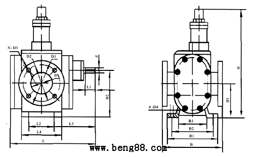 YCB型齒輪泵外形及安裝尺寸的性能參數(shù),是在介質(zhì)粘度4×10-3m2/s(40cSt)時確定的。YCB型齒輪泵外形及安裝尺寸性能參數(shù)表中給出的參數(shù)值適用于介質(zhì)粘度1×10-5~8×10-5m2/s(10~80cSt)范圍內(nèi),超出這個范圍則根據(jù)用戶提出的性能參數(shù)要求另行確定。